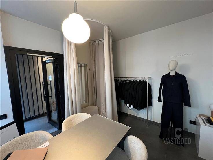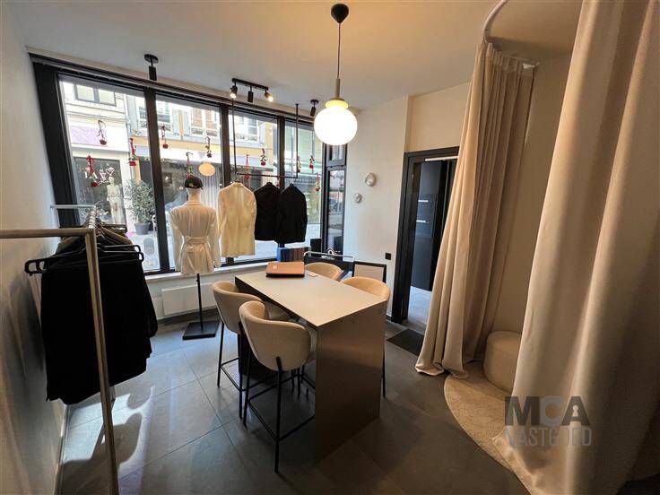 Het gelijkvloers pandje is gelegen in de populaire Diesterstraat, tegenover Bulthaup Keukens en diverse kleine retail-boutiques zoals LA V Store, Prego, Jürgen Eetboetiek, Tops Hairdressers, Bloemenzaak Vinca Bloemen. Het winkelpandje straalt klasse uit en werd in 2022 grondig gerenoveerd. De kelderruimte is voorzien van een kleine keuken met kookvuur, frigo, spoelbak. Warm water via doorstromer. Een toilette.