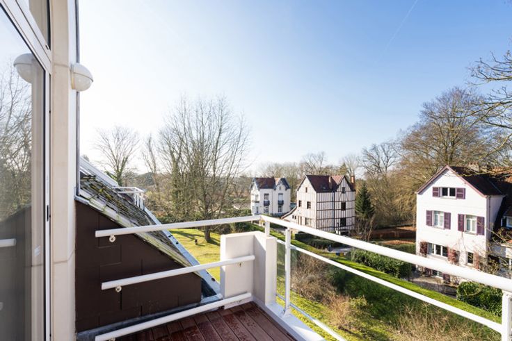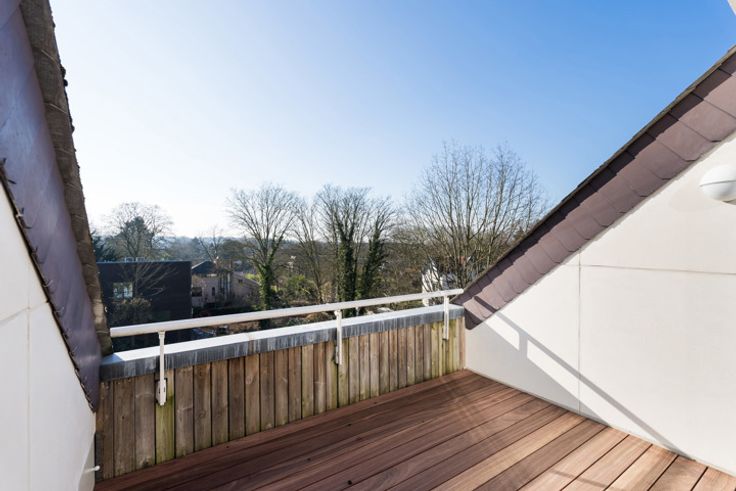 Ukkel, Fort Jaco-wijk, in de prestigieuze Van Beverlaan, dichtbij alle voorzieningen, licht duplex penthouse (4 slaapkamers/4 badkamers) van ± 298 m² met terrassen, parking en kelders. Gelegen op de 2e en 3e verdieping. Het is als volgt samengesteld: inkomhal met WC en vestiaire, woonkamer van ± 78 m² met toegang tot twee terrassen (Zuid en West) en een open haard, volledig uitgeruste keuken met toegang tot een terras (West), nachthal, twee slaapkamers van ± 19 en 13 m² elk met eigen badkamer en terrassen, evenals op maat gemaakte kasten. Op de 3e verdieping: een bureau of slaapkamer van ± 16 m² met douchekamer, master bedroom van ± 30 m² met dressing en badkamer. Twee kelders en een dubbele parkeerplaats maken het pand compleet. Kosten van ± 750€ (onderhoud van de tuinen, verwarming, water, syndicus, gemeenschappelijke ruimtes). PEB D+, houten ramen met dubbele beglazing, gemeenschappelijke gasboiler, videofoon, gepantserde deur, vuilnisruimte, waterontharder, afgesloten garagebox voor twee auto's, conforme elektriciteit. Te ontdekken bij L&P.