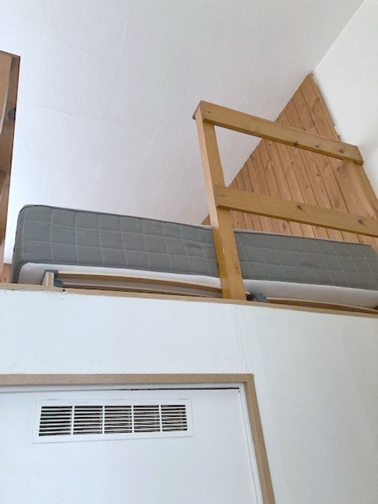 Situé au rez-de-chaussée, dispose d’un coin nuit en mezzanine, d’un living avec une grande fenêtre équipée d’un volet.