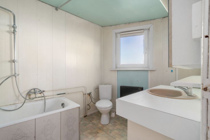 Verdieping: 3 slaapkamers, badkamer, toilet. Verwarming op gas. Elektriciteit CONFORM. EPC 955kWh/m².