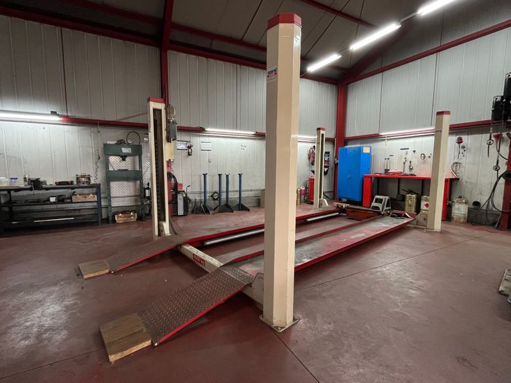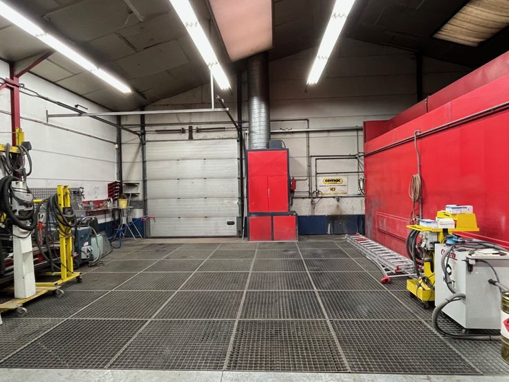 Une cabine de peinture + labo, deux ponts : 2 colonnes 2.500 kg et 4 colonnes, 4.000 kg, système d’alarme, porte sectionnelle, outillage divers, … le tout en bon état et opérationnel.
