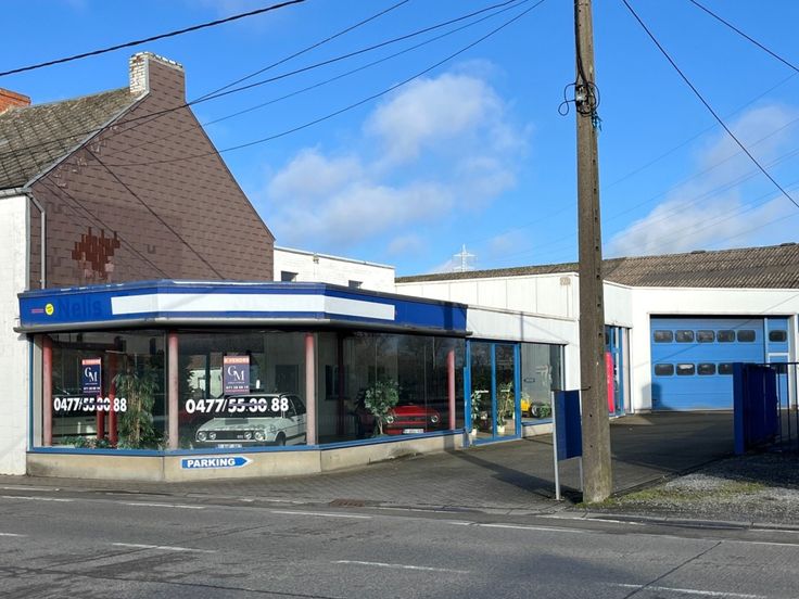 Garage avec Showroom : +/- 980 m² comprenant le showroom, la réception, les bureaux, deux ateliers mécaniques, un entrepôt avec cabine de peinture, un magasin, et une annexe ;