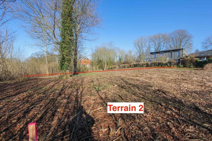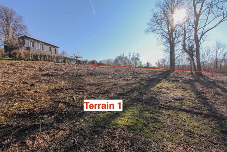 Terrain d'environ 24,85 ares pouvant être scindé en deux terrain à bâtir distincts. Tous les deux permettant d'y construire une villa 4 façades. Largeur de façade à rue d'environ 82m et offrant une vue superbe vue sur la vallée et les alentours. Située dans une rue très calme et sans issue. En surplomb par rapport à la voirie. Vous accédez au terrain via une petite rue à une seule voie de circulation (ancien chemin), assurant quiétude et tranquillité. Ce terrain est également proche des axes autoroutiers (E40 et E411). Ecoles à proximité. Arrêts de bus à environ 3 minutes à pied.Orientation d'Est à Sud-Est. Terrain libre de construction. Le bien n'est pas en zone d'aléa d'inondation. Pas relié aux égouts (une micro station d'épuration sera probablement nécessaire). Pour les visites, accès facile via le haut de la petite rue (ancien chemin).