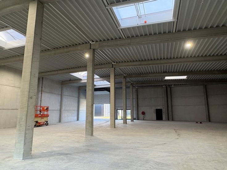 KENMERKEN: bruto oppervlakte hal: 758m² - gelegen op een hoek - 2 sectionaalpoorten 4.00x4.50m tegenover elkaar dus gemakkelijk om door te rijden - 2 aparte ingangen - lichtstraat - 3 lichtdoorlatende RWA (rook- en warmteafvoer) in het dak (+€7.125/RWA) - minimaal 6m vrije hoogte onder de liggers - draagkracht vloer: 3.000 kg/m² - verkoop in CASCO staat en onder BTW-stelsel.