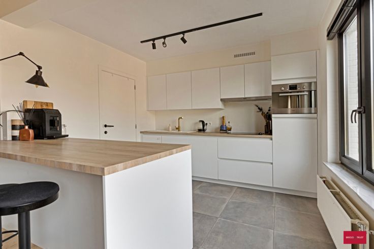 Stijlvol Appartement met 2 slpk, terras en garagebox Ontdek dit prachtig afgewerkte appartement, gelegen op de tweede verdieping, ideaal als investering of eigen bewoning. Dit appartement combineert stijl, comfort en een rustige maar centrale ligging. Bij binnenkomst in de inkomhal wordt u verwelkomd door op maat gemaakte ingemaakte kasten die zorgen voor een nette en georganiseerde entree. De inkomhal is voorzien van een zwarte stalen deur die naar de living leidt, wat niet alleen functionaliteit biedt maar ook ruimte en een luxueuze uitstraling. De open keuken voorzien van alle nodige toestellen straalt luxe uit dankzij het gebruik van een gouden kraan als elegant accent met aansluitend nog een berging. De lichtrijke leefruimte sluit naadloos aan op het stijlvolle interieur en biedt een uitnodigende en comfortabele sfeer. De badkamer is volledig uitgerust met een ruime inloopdouche en twee lavabo’s. Aan de achterzijde bevinden zich twee slaapkamers, beide voorzien van ingemaakte kasten, waardoor de beschikbare ruimte optimaal benut wordt waarvan van 1 slaapkamer uitgeeft op het terras waar u in alle rust kunt genieten. Daarnaast beschikt het appartement over een inbegrepen garagebox. Troeven - Instap klaar en afgewerkt met oog voor detail. - Rustige ligging, maar toch centraal, met alle voorzieningen in de buurt. - Lage gemeenschappelijke kosten. - Conforme elektriciteit - EPC 136 kWh - Garagebox Kortom: een uniek appartement, garagebox dat perfect is voor wie