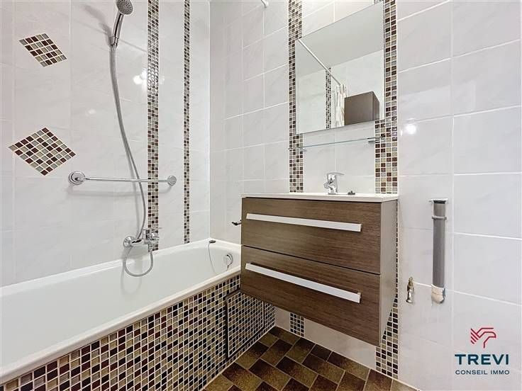 Sorry er is geen nederlandse vertaling beschikbaar. Parfaitement situé à deux pas du centre ville et des commerces, très bel appartement deux chambres avec terrasse. Il se compose d'un vaste hall d'entrée, d'un grand séjour de 30 m², d'une cuisine équipée et d'une buanderie attenante. Deux belles chambres de 16 et 12 m² dont une donnant accès à la terrasse. Salle de bain composée d'une baignoire, d'un meuble évier et d'un coin buanderie. Toilette séparée. PEB B! Loyer : 850€/mois et 225€ de provisions pour les charges communes et la consommation d'eau et de chauffage. Libre immédiatement. Infos et visites au 02 /355.50.55