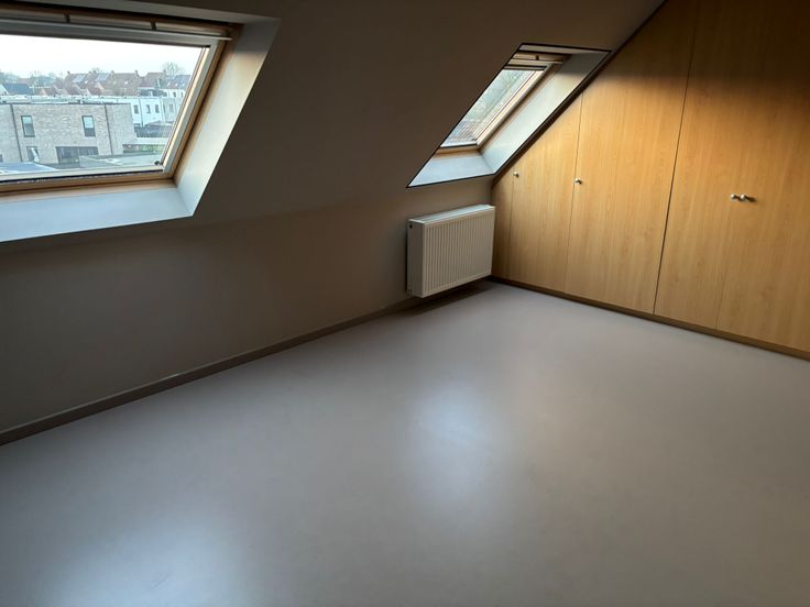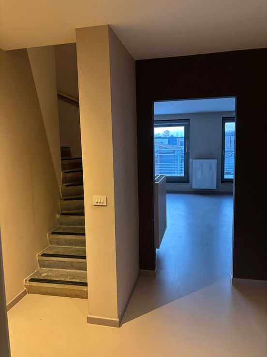Goedgelegen groot duplex appartement op 1ste verdieping met zongerichte groot terras & zonnepanelen. EPC-label A, zeer verbruiksvriendelijk. Keuken is oostgericht, living westgericht. Twee grote slaapkamers op de duplexverdieping en een grote hobbyruimte/bureau/zolder op de triplexverdieping onder het dak, te bereiken met vaste trap. Keuken semi-uitgerust (enkele keukenapparaten ontbreken). Centrale verwarming met radiatoren op gas met hoogcondensatieketel. Een apart toilet op de woonverdieping en een 2de toilet in de badkamer op de duplexverdieping.