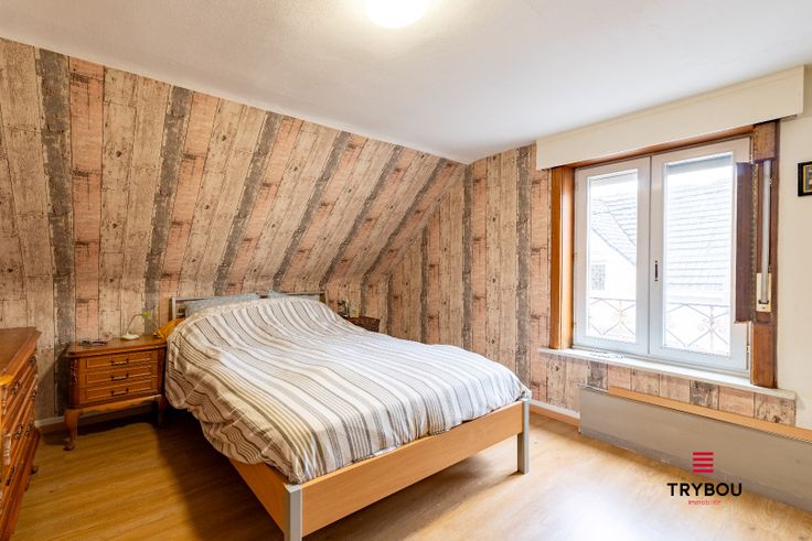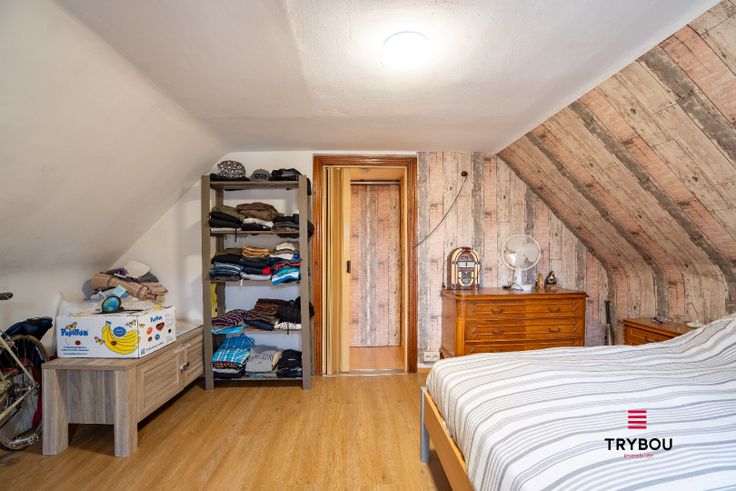 De bovenverdieping telt twee slaapkamers en een nachthal. Buiten zijn er een garage en een tuin.