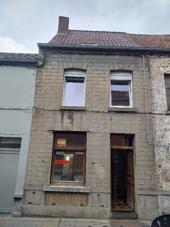 A vendre maison de ville 2 façades, proche commerces,500m de la gare, 400m de la place et poste, banques....Toiture récente, velux, double vitrage, installation électrique, chauffage central gaz de ville, cave, salon, salle à manger, cuisine équipée, salle de bain, cour, 2 chambres et grenier aménageable. PEB: classée énergétique D. Endroit calme.