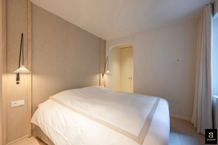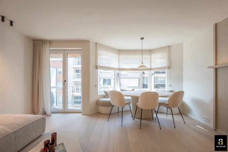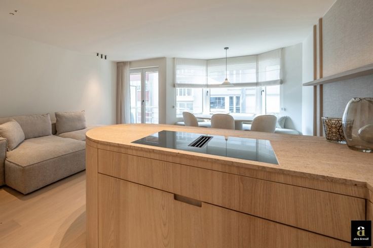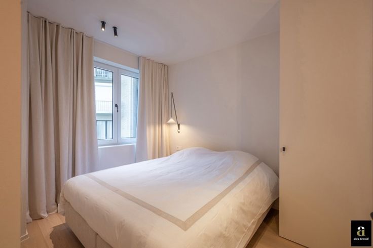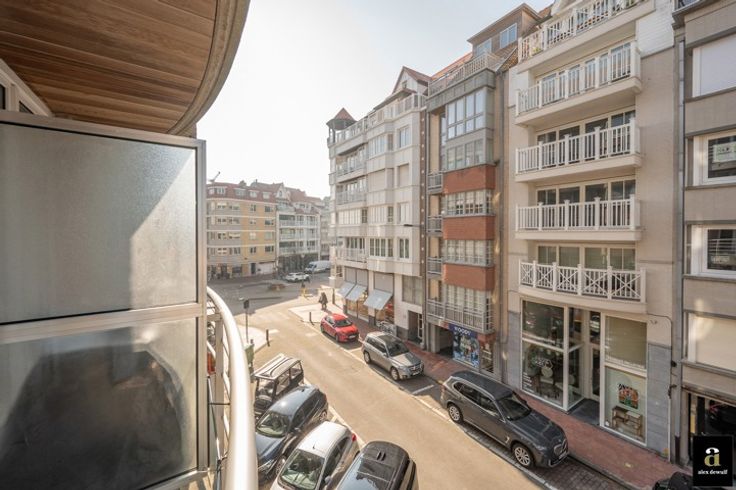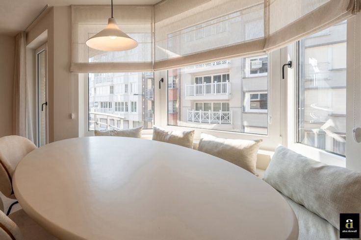 OPENDEURDAG ZATERDAG 08/03 van 10h00-12h00. Prachtig appartement met 2 volwaardige slaapkamers en 2 badkamers, is uitstekend gelegen in het hart van het Zoute, op 50 meter van het strand in een levendige buurt met vele winkels en horeca, aan het Driehoeksplein.  Het appartement is zeer smaakvol gerenoveerd door Chrisma met oog voor het kleinste detail. Indeling: inkom met gastentoilet en vestiairekast, brede woonkamer (westgericht) uitgevend op een klein terrasje vooraan, moderne open keuken voorzien van alle toestellen van Miele, mooi werkblad in travertin natuursteen, fineer eiken kasten in olm, tal van lades, inbouw dampkap, etc.... , Praktische berging met aansluitingen voor wasmachine en droogkast.  Er zijn twee slaapkamers voor dubbele bedden, elk met een eigen, ruime douchekamer. De master bedroom heeft ook een eigen kleine dressing. Bij het appartement hoort een privatieve kelder en een gemeenschappelijke fietsenberging. Er kan een parkeerplaats in hetzelfde gebouw gehuurd worden. EPC: 111 kWh/m²(UC: 3232047)