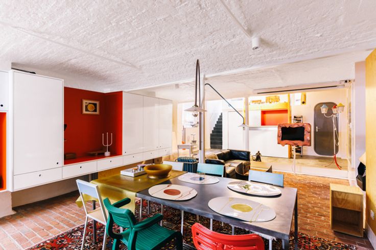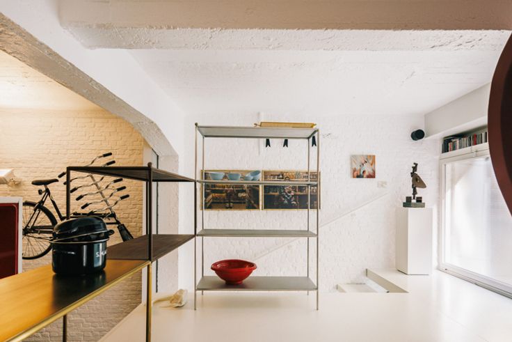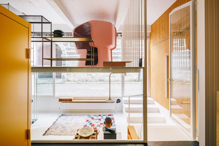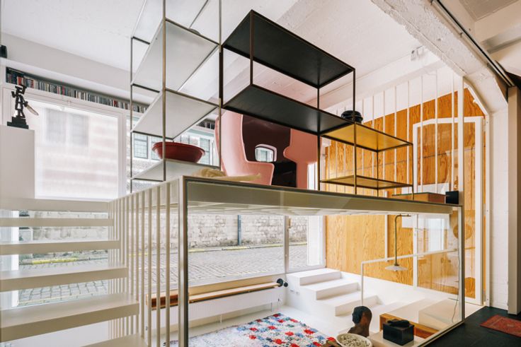 In dit pittoreske straatje, tussen Eilandje en binnenstad, waan je jezelf in middeleeuws Antwerpen – een boeiende match met de moderne loft. Omringd door bruisende activiteit van winkels, restaurants, jachthaven en cultuur ervaar je toch 100% rust. In 2008 renoveerde BULK architecten deze loft met alle comfort. Duurzame materialen lopen er als een rode draad doorheen (leisteen, staal, glas, grenen). Het voormalige pakhuis werd verdeeld over drie niveaus tot woning met expositieruimte, een mooie blend van uiteenlopende functies – wonen, werken, creëren en exposeren. Zuiver privé, combi met atelier, expositieruimte, kantoor of een mix? Alles kan. Vanuit de stalen split level, met open uitzicht, sta je in verbinding met de grote leefruimte (glvl) met twee geschakelde volumes: één originele sanitaire cel van Charlotte Perriand (1975) met badkamer en kitchenette voor skistation Arcs 1800, Les Arcs, en de grenen slaapunit van BULK, met weer authentieke elementen van Perriand. De units staan los in de ruimte en kan je ev. verwijderen. Luxe leefkelder met epoxy en bakstenen vloer, oorspronkelijke gewelven en sublieme, semi-professionele leefkeuken met o.a. Everhot-fornuis, teppanyakiplaat, gaspitten, inductie, warmhoudlades en -lampen, heteluchtoven en kokendwaterkraan. Ook de riante eet- en zitruimte met berging/atelier en barmeubel van Perriand zijn een streling voor het oog. Twee ingangen (privé en commercieel). Parkeerplaats in het gebouw mogelijk @ 45.000€.