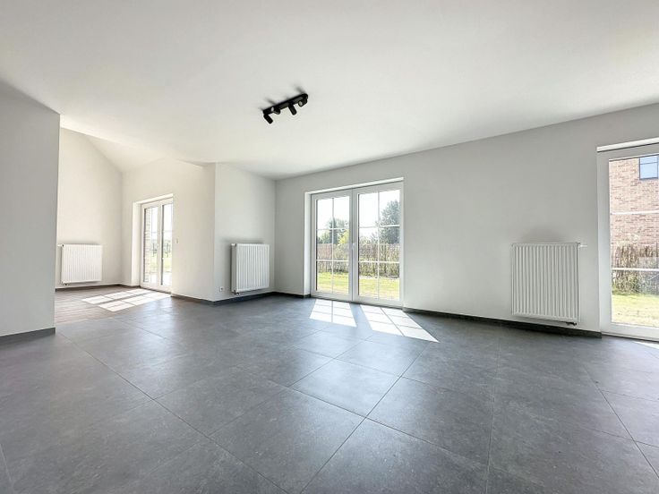 A Wavre (à l'arrière de GSK), dans une petite rue calme, nouvelle villa 4 façades super lumineuse, belles finitions et de beaux espaces, sur un terrain de +/- 14 ares composée comme suit :