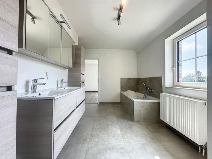 Pour le reste : 6 grandes caves (115 m²), un grand grenier semi aménagé (87 m²), une belle terrasse, une alarme, luminaires, citerne eau de pluie, robot-tondeuse, parkings et garage une voiture. Très belle vue dégagée ! PEB : B.