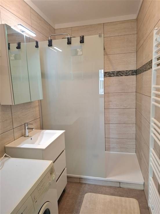 Sorry er is geen nederlandse vertaling beschikbaar. CHAMBRE EN COLOCATION POUR TRAVAILLEUR : A 5 minutes à pied du centre-ville de Namur, en bord de Sambre, à proximité de toutes les commodités (commerces, bus, gare de Namur à 10 min à pied...), très bel appartement pour colocation de travailleurs (pas d'étudiant), composé de 3 chambres louées séparément. Les parties communes de l'appartement sont composées d'un très lumineux séjour de ± 23 m² avec salle à manger et salon tv, d'une cuisine équipée (taques vitro., hotte, four, frigo, congèl, évier + meubles), d'un grand hall d'entrée, d'une toilette et d'une salle de douche avec espace buanderie. La chambre disponible est composée d'un coin bureau, d'un lit simple et d'un placard. Celle-ci est louée au prix de 370 € + 125€ de charges mensuelles. La provision de charges comprend l'eau, le gaz, l'électricité, internet, la tv et le nettoyage des parties communes 1 fois toutes les deux semaines. De plus, cet appartement est entièrement équipé en électro-ménager, en ustensiles de cuisine et en nécessaire de nettoyage. Bail de colocation. Libre le 01/06/2025. PEB C : 230 kWh/m².an (code unique : 20230602010118 - E totale : 19.467 kWh/an)