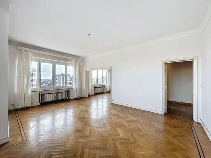 Square Vergote, à proximité de Montgomery et du Parc du Cinquantenaire, au 6e étage avec ascenseur d’un immeuble Art Déco, superbe appartement deux chambres de ± 136m² avec terrasse. Composition : hall d’entrée ± 8m², spacieux et lumineux séjour de ± 23m² avec salle à manger, cuisine super-équipée de ± 14m², hall de nuit, 2 chambres de ± 18 et 17m² dont une avec accès à une belle terrasse de ± 5m², salle de bain, wc séparé. Cave et chambre de bonne. Détails : LIBRE IMMEDIATEMENT, immeuble de caractère datant de 1936, rafraîchi en 2025, double vitrage, parquet au sol, porte blindée. Charges : 250€/mois comprenant eau chaude, chauffage, communs et ascenseur. Idéalement situé à proximité de toutes commodités, nombreux commerces, restaurants, écoles, parcs. Transport en commun : Station Montgomery, tram 7,28, bus 27, 28, 80. Annonce et indications non contractuelles, sous réserve de modifications. – Tel : 02 779 99 99 – ID 6631338