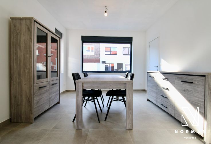 Je komt binnen in de inkomhal, die toegang geeft tot de lichtrijke leefruimte. Deze is opgedeeld in een eetruimte, een gezellige zithoek en een hypermoderne keuken, uitgerust met alle toestellen. Aansluitend aan de keuken vind je een ruime berging/wasplaats en een droge kelder. De tuin is toegankelijk via zowel de keuken als de berging. Verder is er op het gelijkvloers nog een gastentoilet.