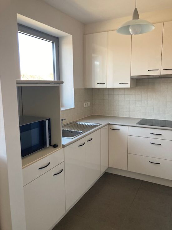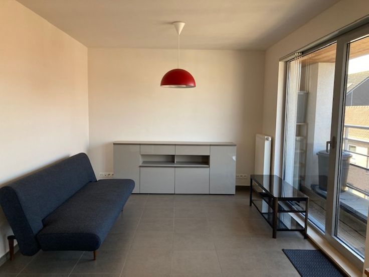 Indeling: inkom, apart toilet, badkamer met lavabomeubel en ligbad, 2 slaapkamers, woonkamer met open ingerichte keuken, terras + aparte berging beneden. Kan met meubels verhuurd worden.