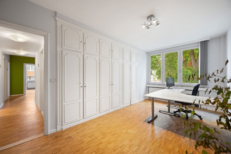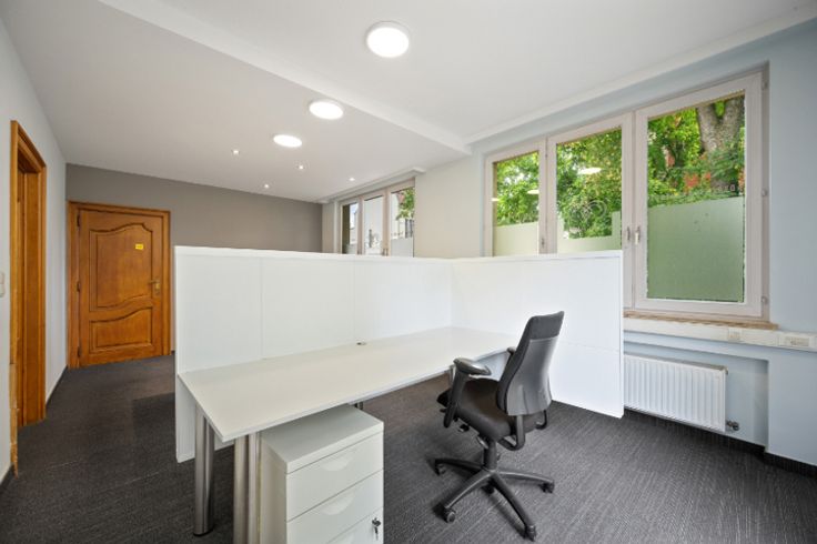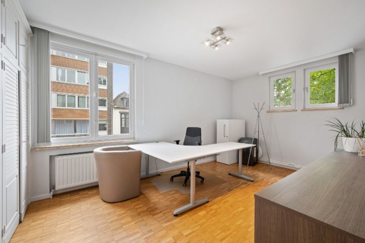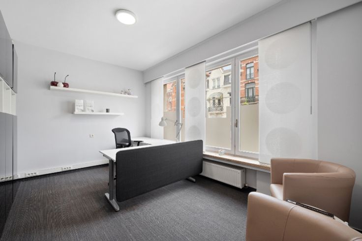 Op de begane grond is er een ruime hal, met een 2 toegang langs de straatzijde van het gebouw, met vestiaire, kantoorruimte, een toilet, een receptie, een bergruimte en een terras. Op de eerste verdieping zijn er vier ruime kantoren, waaronder drie met ingebouwde kasten, een doucheruimte met toilet en een kantoor met privébadkamer.
