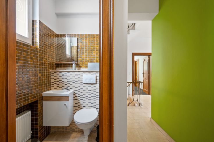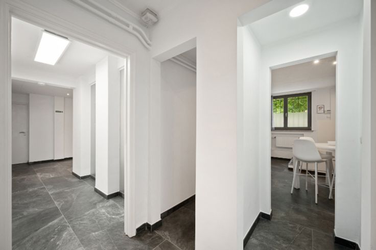 Het pand heeft een groot terras en voldoende parkeergelegenheid, wat zowel binnen als buiten voor een aangename omgeving zorgt. De kelder beschikt over inkomhal met een eerste deur die toegang heeft tot de parking, een wachtkamer, twee vergaderzalen, een volledig uitgeruste keuken en twee kelders.