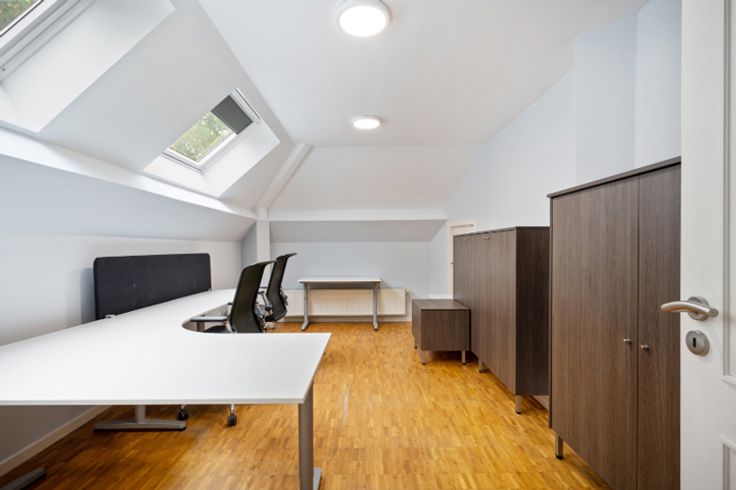 Op de tweede en derde verdieping zijn er nog eens vier kantoren, waarvan één met ingebouwde kasten, een technische kamer, een doucheruimte en een toilet. Er is ook een zolder.
