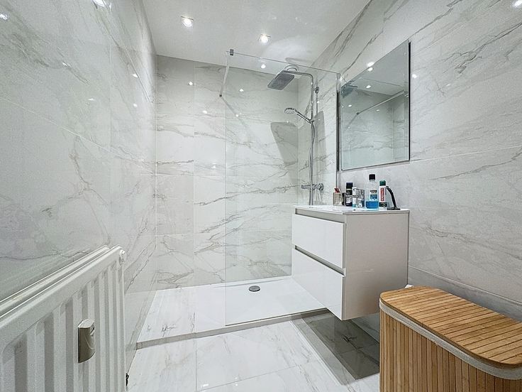 Le hall de nuit dessert la chambre de 14 m² ainsi que la splendide salle de douche.