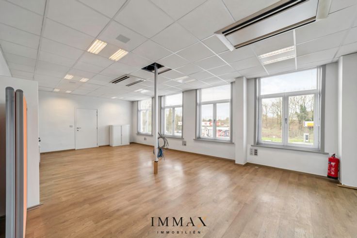 - 1e verdieping (200 m²) bestaande uit directiebureel, kantoorruimte (21 m² - 78 m²), toonzaal (75