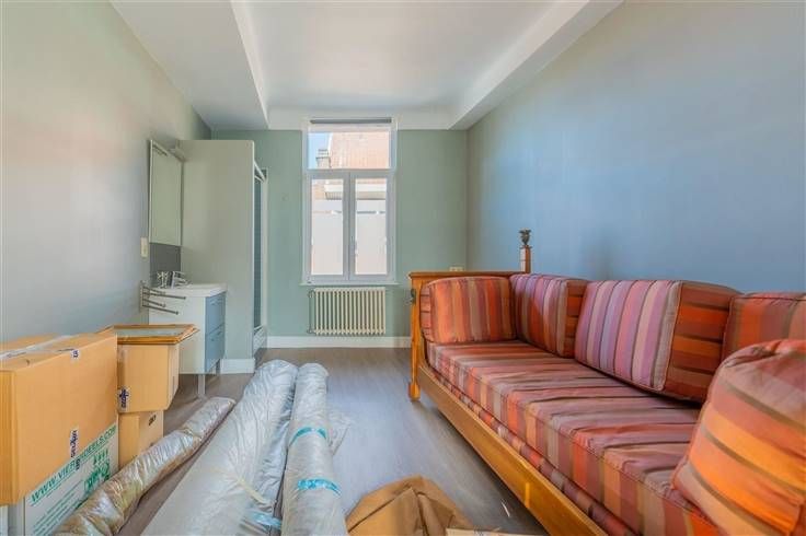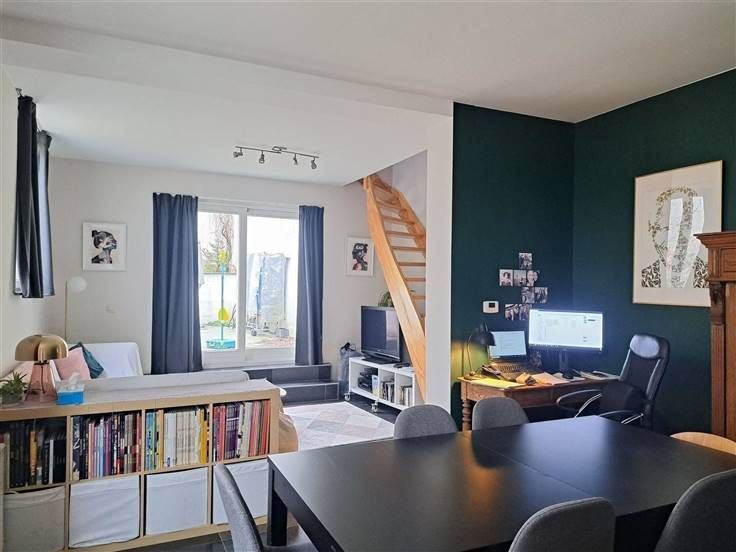 RDC : Hall d'entrée, living avec cuisine ouverte, chambre avec salle de douche et w.c.