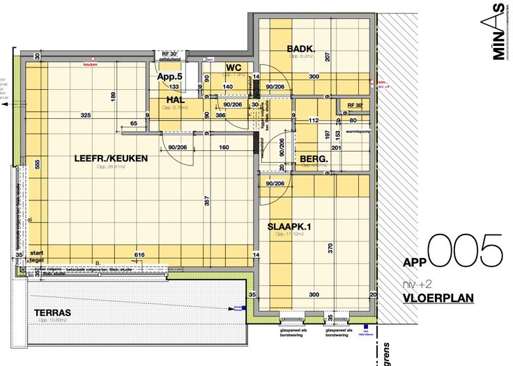 Voorts zijn er een centrale gang, 1 slaapkamer, een badkamer met inloopdouche en een apart toilet dewelke u nog naar eigen smaak kan afwerken ( inbegrepen in de prijs ).