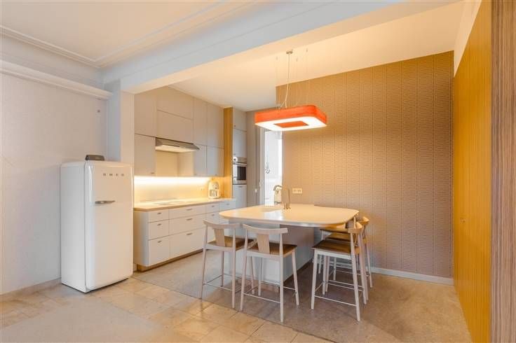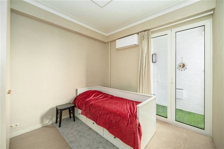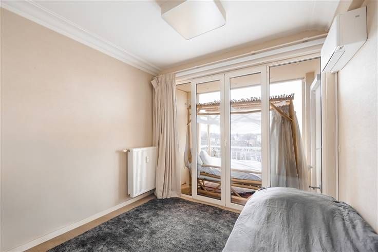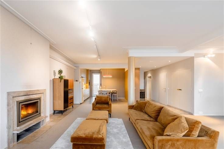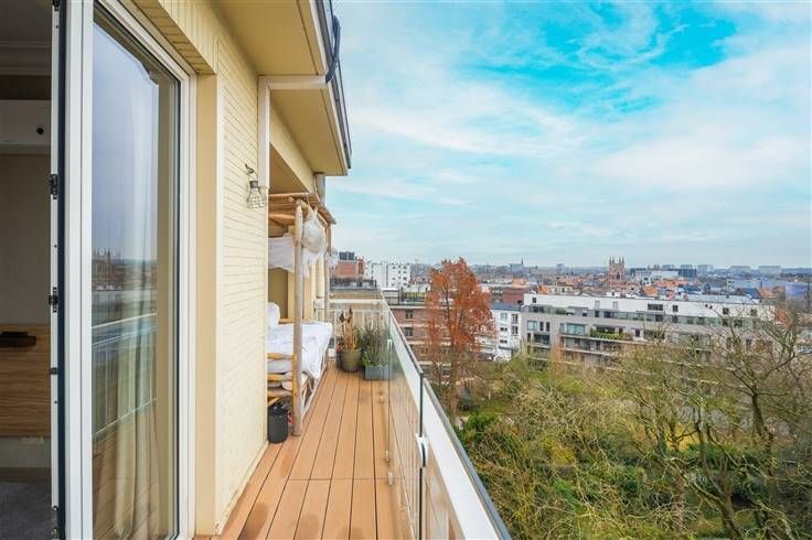 Ontdek deze exclusieve penthouse op de Belgiëlei, waar luxe en comfort naadloos samenkomen met een vleugje Italiaans design. Recent totaal gerenoveerd en geïnspireerd door de wereldberoemde architect Gio Ponti, biedt dit appartement een verfijnde en warme sfeer. Met zijn royale indeling, hoogwaardige afwerking en adembenemende vergezichten over het Harmoniepark, is dit penthouse de ideale plek om thuis te komen. De lift brengt u rechtstreeks naar de achtste verdieping, waar u wordt verwelkomd in een riante woonkamer in serene tinten. De haard en het panoramische uitzicht zorgen meteen voor een uniek gevoel van thuiskomen. De op maat gemaakte keuken is uitgerust met Corian werkbladen, een bronskleurige Boretti-designkraan, inductiekookplaat en oven. Een stijlvol geïntegreerd kastenblok in Zebrano herbergt een praktische berging. In de eetkamer wordt het luxueuze karakter versterkt door de lederbeklede wand in cognackleur. Aangrenzend vindt u een stijlvol geïntegreerd bureau, ideaal voor thuiswerk. Het slaapgedeelte omvat drie ruime slaapkamers met ingebouwde maatwerkkasten en eigen terras. Hier geniet u van een prachtig uitzicht en rust dankzij de hoogwaardige vloerbekleding in een antiallergische, geweven vezel. De penthouse beschikt over twee designbadkamers met sanitair van het Zwitserse merk Laufen. De ene badkamer is uitgerust met een ligbad, de andere met een inloopdouche.