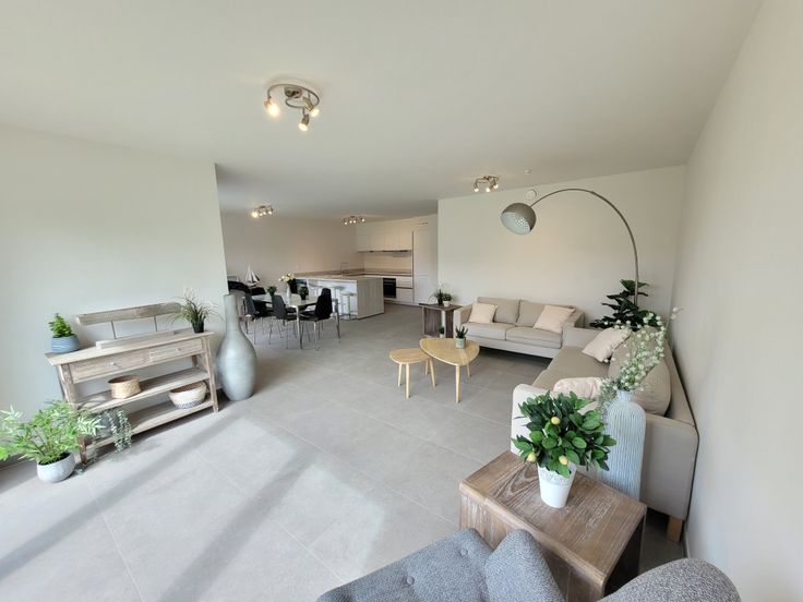 Finitions de premier choix : châssis triple vitrage, ventilation double flux individuelle,) chauffage par le sol, chaudière individuelle au gaz à condensation, cuisine full équipée de qualité avec appareils Siemens, luminaires LED inclus, isolation thermique élevée, PEB A,local poubelles, local vélo, etc.