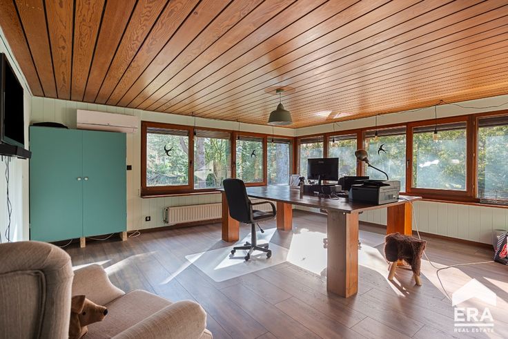 De woning is zeer ruim opgezet met een prachtige lichtrijke woonkamer. De woning staat op een mooi omheind perceel van 1915m² met veel privacy. Vanuit de open woonkamer is er een prachtig zicht naar de tuin. Er zijn 4 (eventueel 6) slaapkamers, 2 badkamers en een groot kantoor of hobbyruimte. Eventueel is de woning gelijkvloers te bewonen, 2 slaapkamers en 1 badkamer bevinden zich op de begane verdieping.