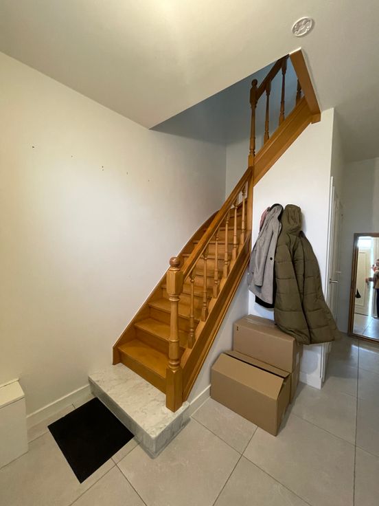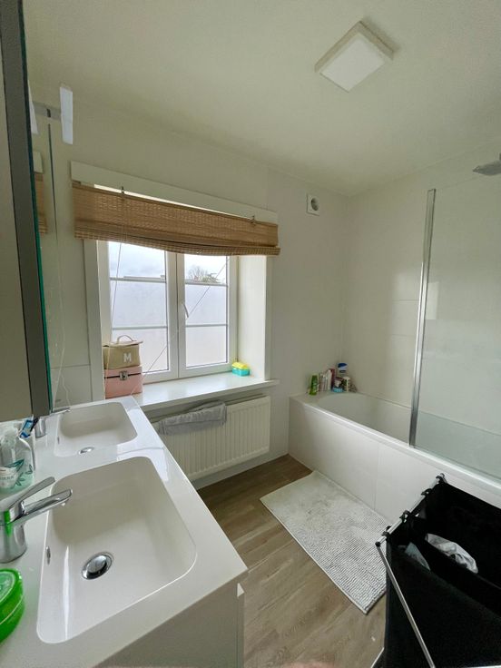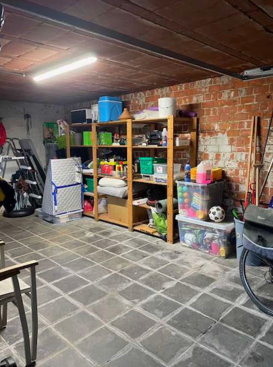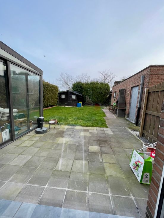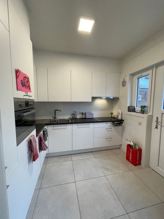 Gezellige woning (halfopen bebouwing) te huur in Wetteren met een ruime leefruimte, aparte keuken, 3 slaapkamers, 2 aparte WC's, berging, badkamer, tuin met terras en aparte garage.