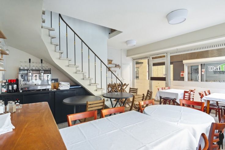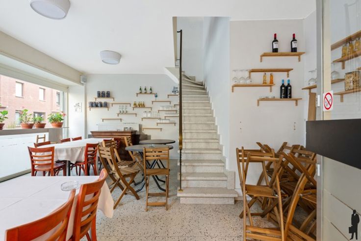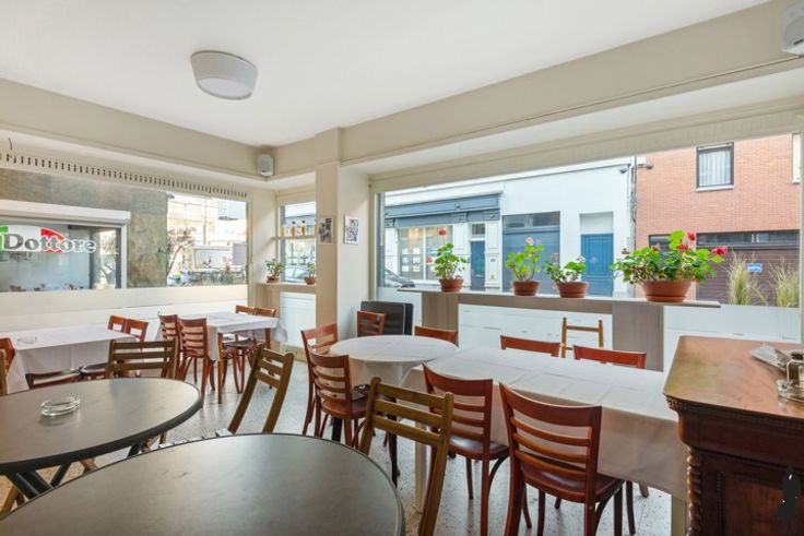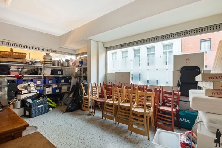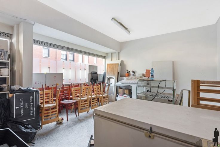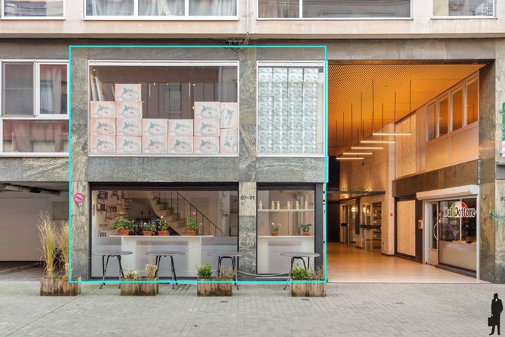 Gelijkvloers: Ruime en open commerciële ruimte, ideaal voor tafels of een winkelopstelling. Achteraan bevindt zich een afzonderlijk toilet.