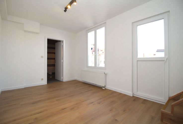 Uccle, à proximité de l'ancienne maison communale, des commerces et des transports en communs, au 2ème étage d'un immeuble calme, appartement 2ch de +/- 75m² fraichement rénové, parquet partout et offrant : Hall d'entrée, séjour +/- 25m², cuisine américaine hyper équipée, une chambre de +/- 16m² avec salle de douche et une chambre de +/- 14m² avec salle de bain. Charges : 35€/mois (communs). Compteurs individuels (chaudière gaz individuelle). Triple vitrage. Parlophone. PEB : F. Libre immédiatement. A saisir !