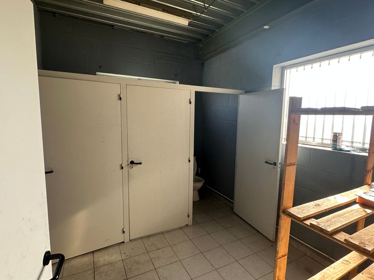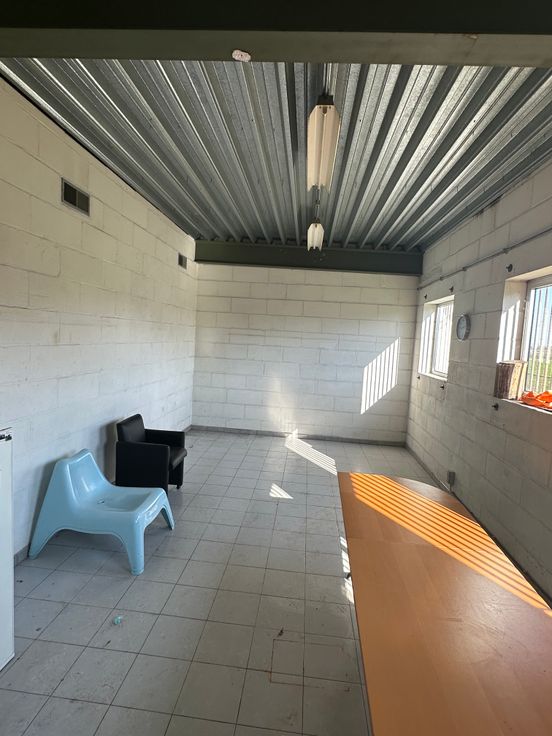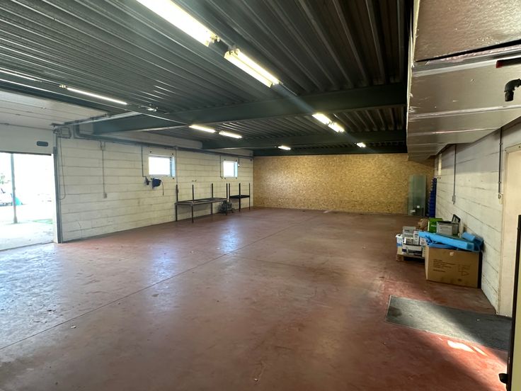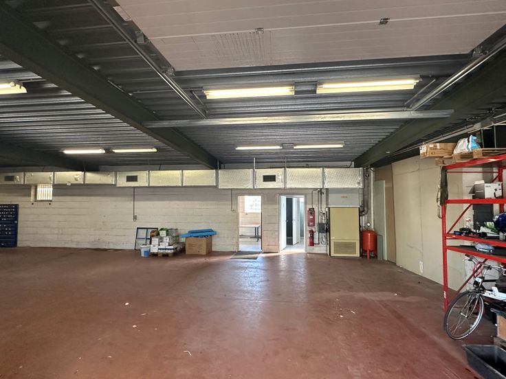 Magazijn-werkplaats met kantoorruimte en toilet.