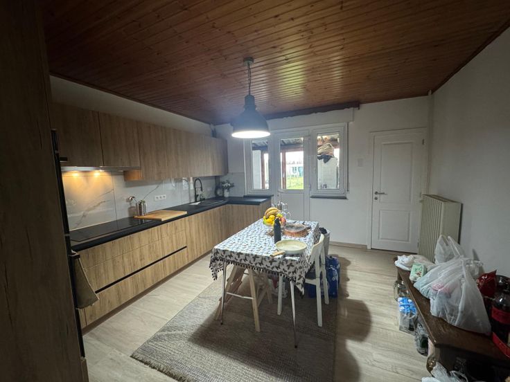Ruime woning op een gunstige locatie.Het gelijkvoers bestaat uit een inkomhal, leefruimte met eetkamer, reeds ingerichte keuken, apart toilet, zitplaats en wasplaats. Op het eerste verdiep bevinden zich 2 slaapkamers en de badkamer. Het tweede verdiep bevat een derde slaapkamer en een zolderruimte. Bij het pand hoort een garage, een kelder en ruime tuin met een tuinhuis en de zolder bied mogelijkheid tot 2 slaapkamers. Het pand is instap klaar om te wonen.