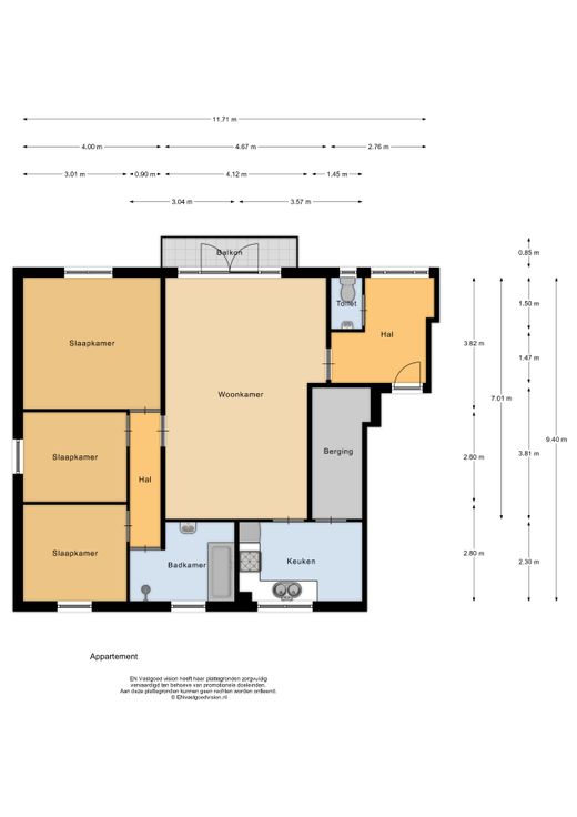 Ruim en lichtrijk appartement met 3 slaapkamers
