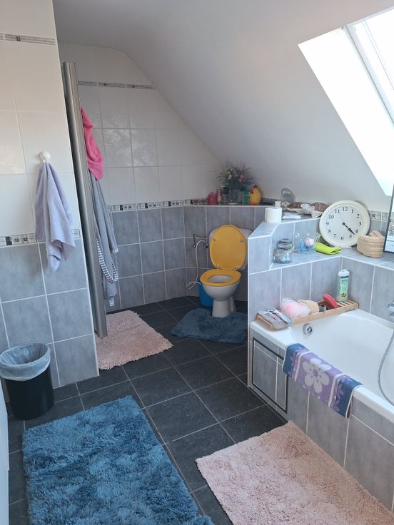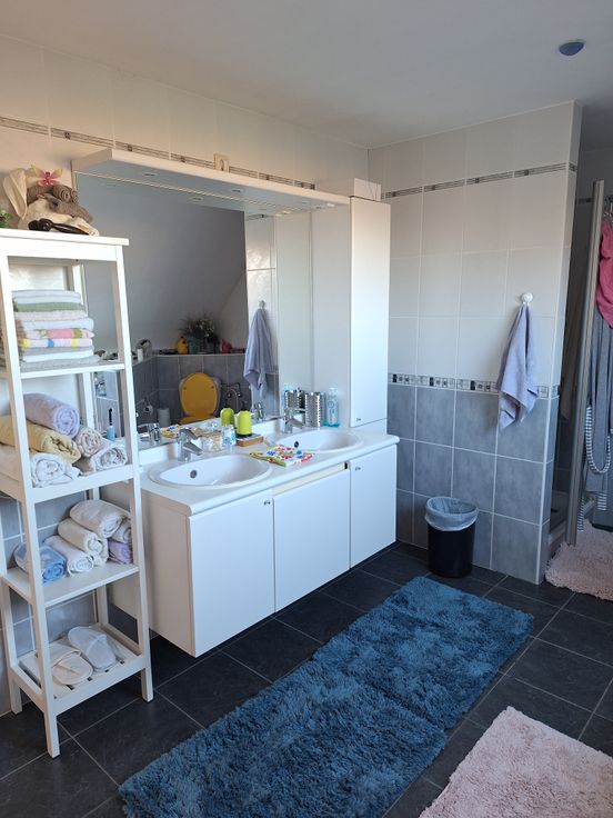 salle de bain 15m² avec double évier-baigoire-douche-WC, grenier 7m².