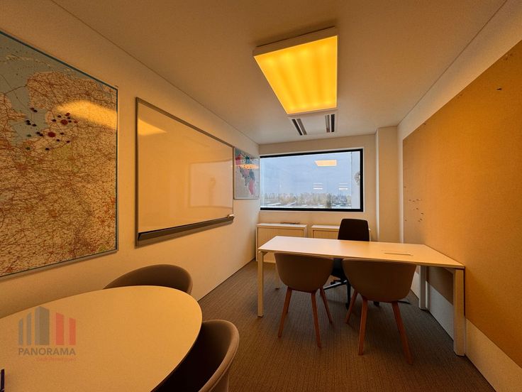 De landscape kantoorruimte is voorzien van een verlaagd plafond met verlichting en HVAC-units (temperatuurregeling per ruimte is mogelijk). Daarnaast zijn er aparte burelen/vergaderzalen (met geluidsdichte deuren), sanitair, kitchenette en onthaal. Toegang zowel via lift als trap.
