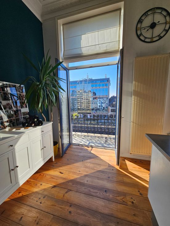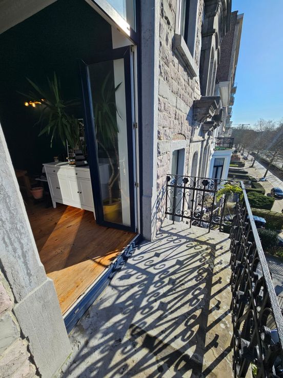 Dans une élégante maison de maître bruxelloise datant de 1910 et complètement rénovée en 2013, découvrez ce magnifique duplex de 115 m², situé au sein d’une petite copropriété de 4 unités.