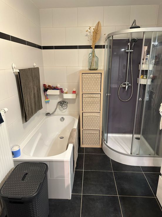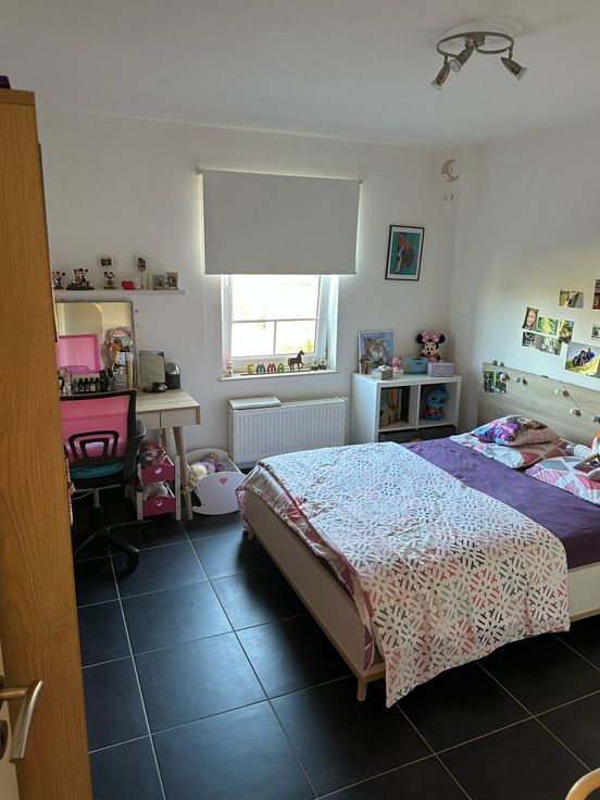 Très bel appartement avec balcon et garage situé dans quartier agréable au 1er étage. Hall d'entrée, très beau living ouvert sur cuisine équipée, grande buanderie, 3 chambres, salle de bain avec douche et baignoire, wc séparé, garage séparé avec parking 1 voiture. excellent état, environnement calme à quelques minutes des axes routiers principaux et commerces.