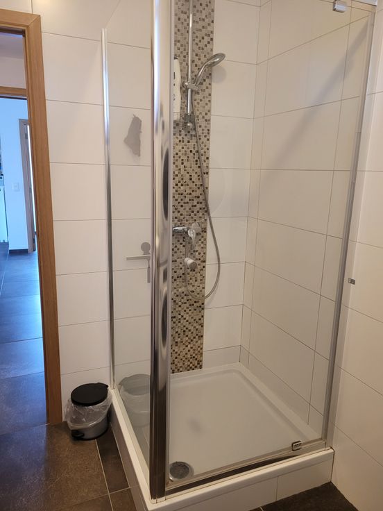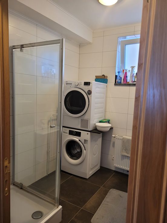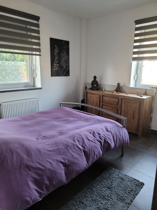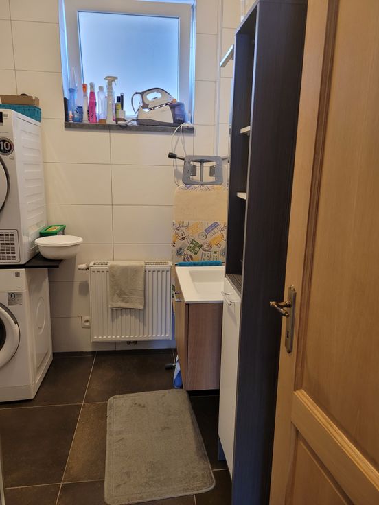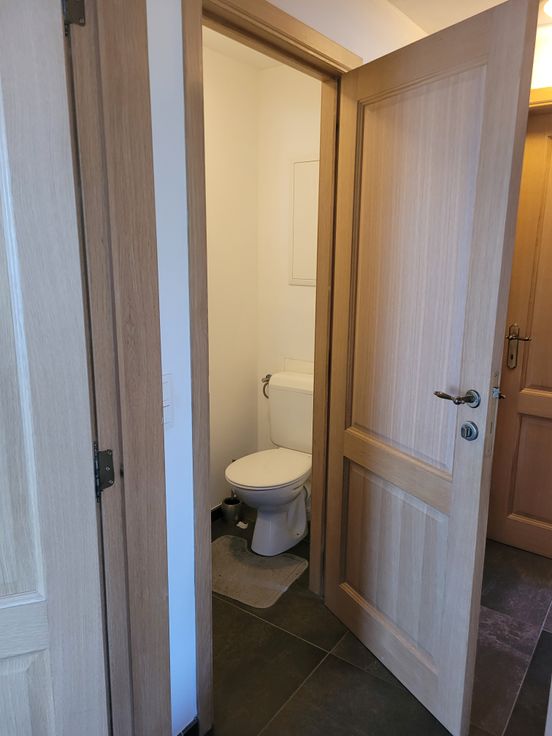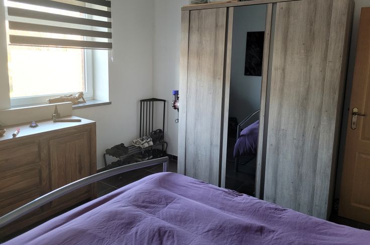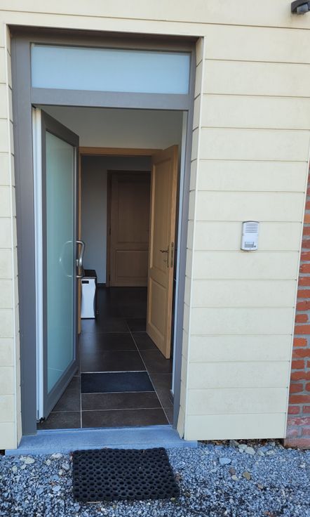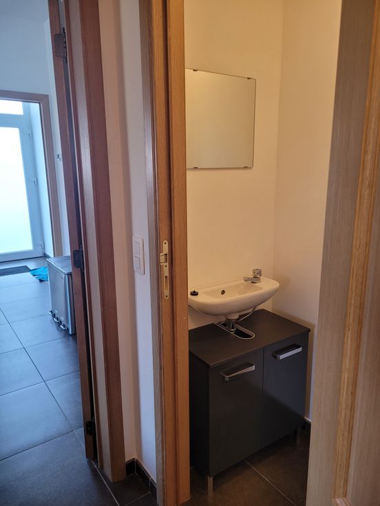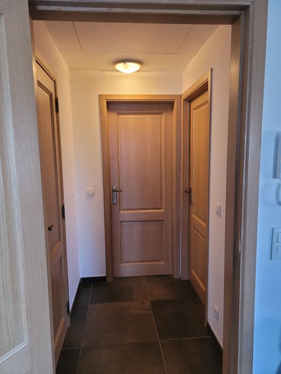 Appartement lumineux avec hall d'entrée indépendant, cuisine équipée (frigo, congélateur, four, taque céramique, hotte, lave-vaisselle). 1 hall de nuit, 1 chambre, 1 WC séparé avec lave-main, 1 salle de douche (avec raccord lave-linge, sèche-linge). Place de parking à l'arrière du bâtiment. Possibilité d'entreposage des poubelles dans local extérieur. Compteur électrique bi-horaire indépendant. Charges communes (85€) comprenant l'électricité des communs avec spot extérieur, entretien des abords par un jardinier, entretien VMC, provision pour le chauffage au mazout (décompteur relevé 1x/an), provision pour l'eau (décompteur relevé 1x/an)