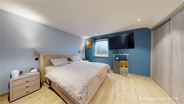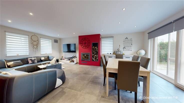 Génération Immo presenteert dit huis met 4 voorgevels, gelegen in een kleine straat met zeer weinig verkeer, dicht bij de velden, en biedt een rustige en natuurlijke leefomgeving. Deze woning is ideaal voor gezinnen die op zoek zijn naar rust en comfort en onderscheidt zich door de zorgvuldige afwerking en moderne faciliteiten. Het huis heeft drie grote, lichte slaapkamers en een badkamer met douche. Het interieur is ontworpen om een aangename leefruimte te bieden met mooie afwerkingen, waardoor een warme, functionele sfeer ontstaat waarin je je meteen thuis voelt. Qua uitrusting heeft dit huis geen gebrek aan troeven: het heeft 22 fotovoltaïsche panelen voor een optimaal energiebeheer. De VMC zorgt voor een uitstekende luchtkwaliteit binnenshuis en de moderne veiligheidsvoorzieningen omvatten een videofoonsysteem, een alarm en een elektrische poort. Bovendien zijn er voldoende parkeerplaatsen voor jou en je gasten. Tot slot is de locatie van het huis een oase van rust. Je geniet van een prachtig uitzicht over de weilanden, terwijl je toch dicht bij transportverbindingen, scholen en winkels bent. Het is een rustige, groene omgeving, ideaal voor wie op zoek is naar rust en natuur zonder de nabijheid van voorzieningen op te offeren.