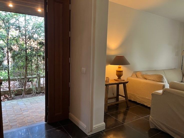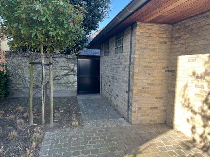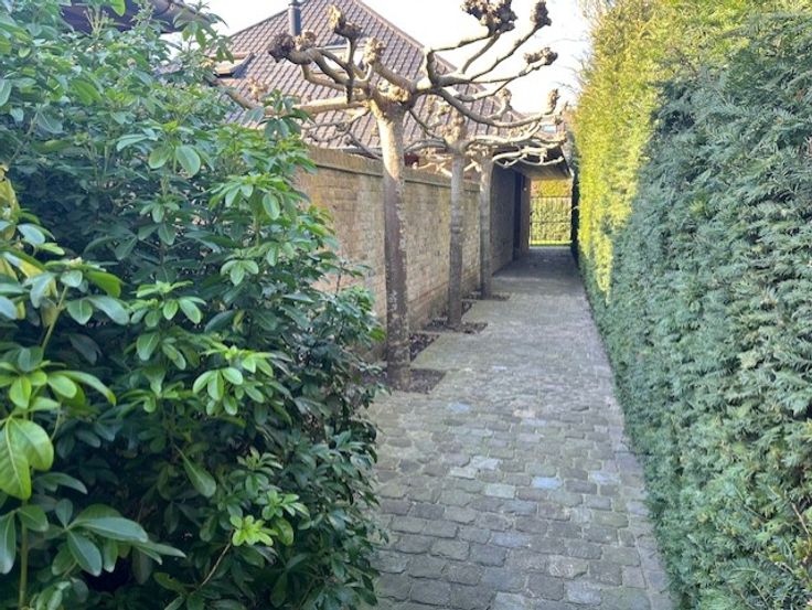 U wandelt binnen in de volledig private binnentuin waarlangs u via een gangpad naar de woning kan.