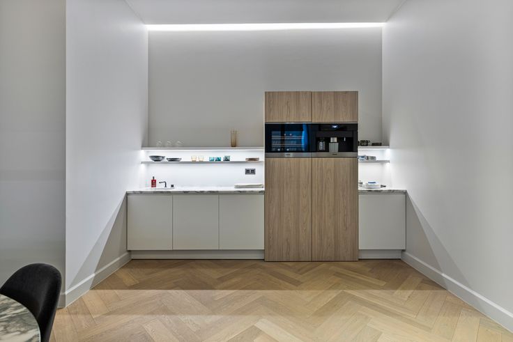 De luxueuze uitstraling wordt versterkt door de visgraatparket, marmeren accenten en doordachte afwerkingsdetails zoals: