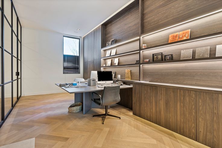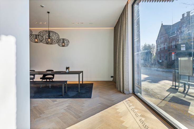 Bij binnenkomst word je verwelkomd in een stijlvolle kantoor- of winkelruimte met een grote raampartij, perfect als etalage. Aansluitend bevindt zich een praktische berging en een sanitair gedeelte met ingewerkte douche, Mortex-afwerking en Vola-kraanwerk.