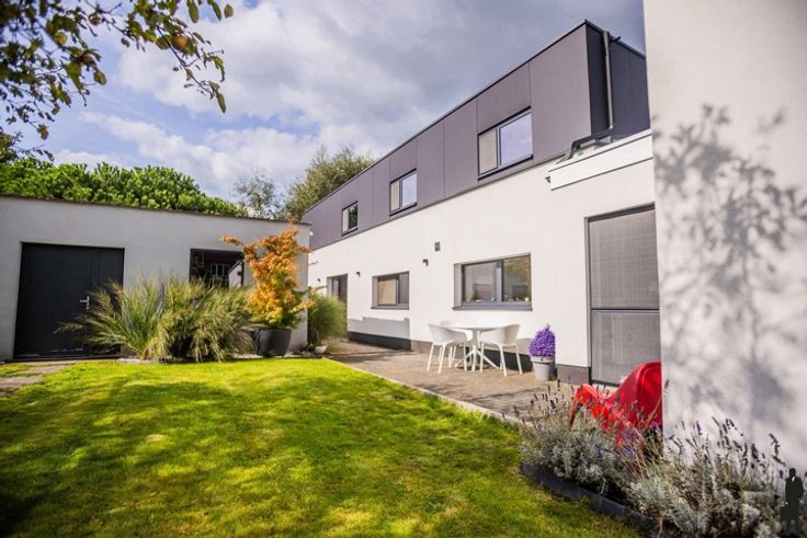 Gerenoveerde woning met 4 slpks, bureau, ZW tuin en 2 garages/werkplaats in groene omgeving in het centrum van Blaasveld Algemeen: - Unieke woning met optimale levenskwaliteit - Zeer goed onderhouden en energiezuinige woning met EPC B - Kwalitatief uitgevoerde renovatiewerken - Bew.opp.: ca.264m² excl. garages - Onderhoudsvriendelijke ZUIDWEST georiënteerde tuin - Optimale lichtinval in gehele woning - Grote, gezellige leefruimte met houtkachel en speelhoek (ca.71m²) - Volledig geïnstalleerde keuken met ontbijthoek - Badkamer met douche en ligbad op het GLVL + douchekamer op 1eV - 4 ruime slaapkamers - Aparte bureauruimte met op maat gemaakt meubilair - Wasplaats/berging + voorraadkamer - Inpandige garage en externe garage/atelier - Beschikbaarheid in samenspraak met eigenaar Onmiddellijke omgeving: - Zeer vlotte bereikbaarheid naar A'pen en Brussel - Scholen, winkels en openbaar vervoer op wandelafstand - Zeer rustige omgeving naast park Bel-Air en vlakbij natuurdomein ‘Het Broek’ Technische kenmerken: - Renovatie en aanbouw 1eV (houskelet) (2018-2019) - Grondwaterput met filterinstallatie voor watervoorziening - CV mazout - Google Home systeem - Gevelisolatie (14cm) en crepigevel (2022) - 14 zonnepanelen met batterij - Maatkasten Camber (2024) - Badkamers (Facq en Desco) vernieuwd in 2021 (1eV) en 2024 (GLV) Stedenbouw in aanvraag. Voor meer info kan u terecht op www.deboerenpartners.be.