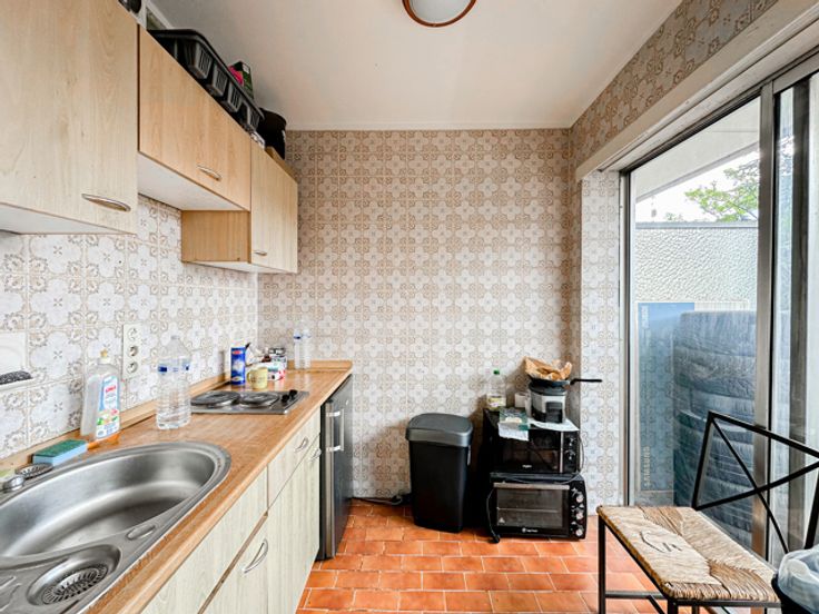 Ideaal gelegen op een boogscheut van Tour et Taxi, te renoveren studio met terras van ± 10 m². Het bestaat uit Inkomhal van ± 4 m², woonkamer met slaapruimte van ± 20 m², half ingerichte keuken van ± 5 m², badkamer met toilet en bijkeuken van ± 5 m² en een terras van ± 10 m² op het oosten. Ook: Conforme elektriciteit - Nieuwe ketel - Ingang telefoon - Kelder - Fietsen kamer - EPC: D. Een must-see!