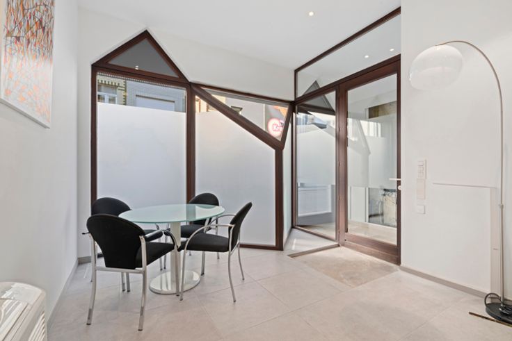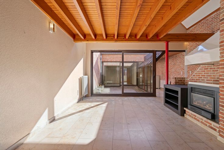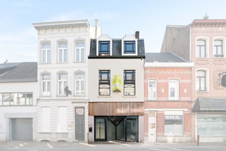 Deze uitzonderlijke woning met veel lichtinval is gelegen in het centrum van Geraardsbergen, dichtbij station. Deze woning beschikt vooraan over een volledig nieuw kantoor dat apart kan gebruikt worden (en ook afgesloten worden) van de woning. Deze ruimte is ideaal voor een vrij beroep of als privé bureau, afgesloten van het huis. Bij binnenkomst bereikt men via de inkomhal de living, waarboven een mezzanine is. De living heeft veel lichtinval door de patio. Achter de patio bevindt zich de keuken en eetruimte. Verder bevindt zich ook nog een berging naast de keuken waar er ook nog een douche staat. Via de keuken kom je op het terras dat uitgeeft op een aangenaam stadstuintje. Op het eerste verdiep bevinden zich 2 slaapkamers en een badkamer. Op het 2e verdiep bevindt zich nog een slaapkamer met bureau. Verder is er ook nog een zolder. Meer info? Bel Isabelle 0498/10.69.56