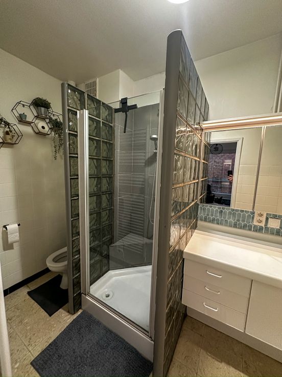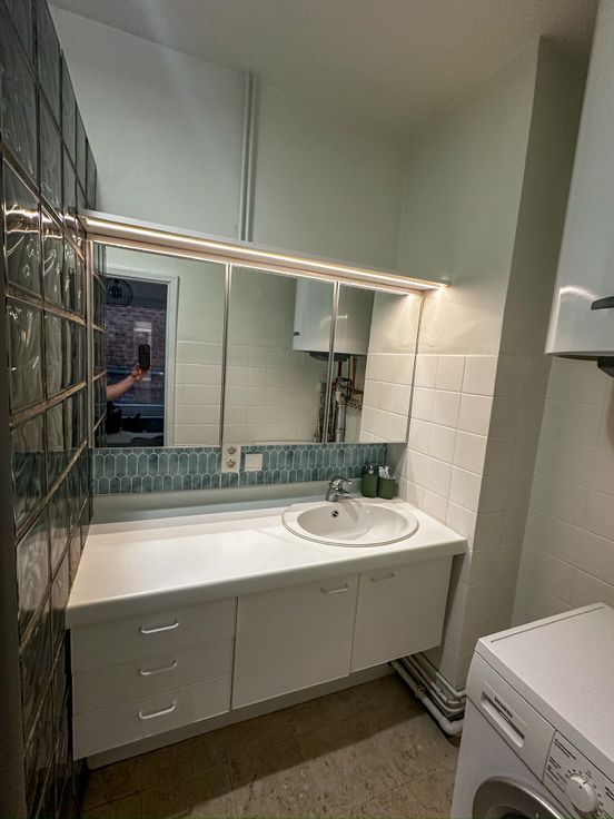 - De badkamer heeft een lavabo, douche en wc